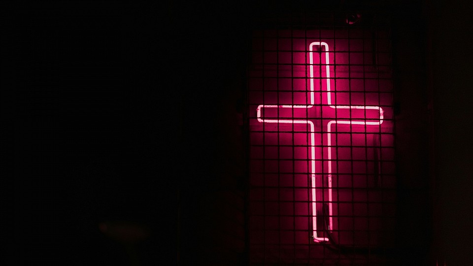 The Cross, signifying religion. Religions, which give dogmas that tend to keep people in subjugation, are among the creators of the woes of man. Spirituality must replace religionism.